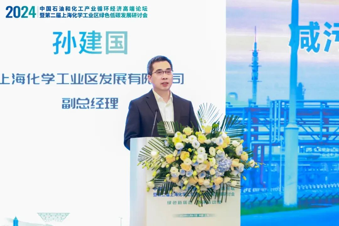 上海化学工业区发展有限公司副总经理孙建国以《减污降碳协同推动化工园区高质量发展》为主题,详细介绍了园区在减污降碳方面的系统性工作:明确园区减污降碳顶层设计,涵盖园区污染治理体系和碳达峰实施路径,提出减污降碳系统性协同范式,展示园区层面的减污降碳协同实现场景。他还分享了园区在绿电、氢能利用、生物制造等多领域的创新实践案例。